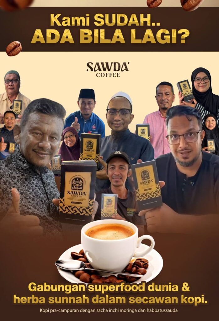 Kopi SAWDA adalah minuman kopi yang diperkaya dengan ekstrak moringa, sacha inchi dan habbatussauda yang terkenal dengan pelbagai manfaat kesihatan. Ia membantu meningkatkan tenaga dan menyokong sistem imun badan.